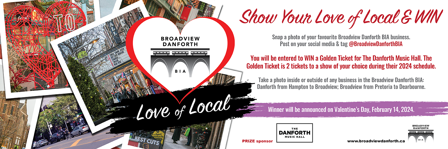 Starting today (Feb. 2) we're asking your customers to take a photo of their favourite BIA business and post it to their socials and tag us @BroadviewDanforthBIA. Once they do this they will be entered to win a really great prize: A Golden Ticket to our Danforth Music Hall. This golden ticket gives the winner 2 tickets to a show of their choice this year! Huge thanks to Cameron Wright, Music Hall GM and BIA Board Member, for generously donating this prize.